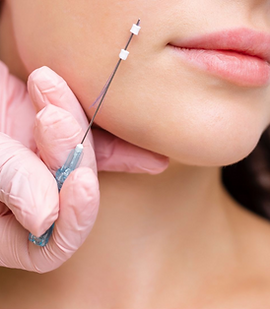 The placement of threads is a simple, in-office treatment. We’ll numb the skin in the treatment zone, and we may make a few light marks on the skin that we’ll use as reference points as the threads are placed. We’ll use a needle filled with polydioxanone to place a string of the material just beneath and parallel to the surface of the skin. The treatment can take anywhere from 20 minutes to two hours, depending on where it is performed. For most patients, the skin is immediately lifted by the placement of the thread. Your results will continue to improve over the next six weeks as your body responds by producing more collagen. By the time the threads dissolve, a new lattice of collagen will have formed that will take the thread’s place in supporting the skin.